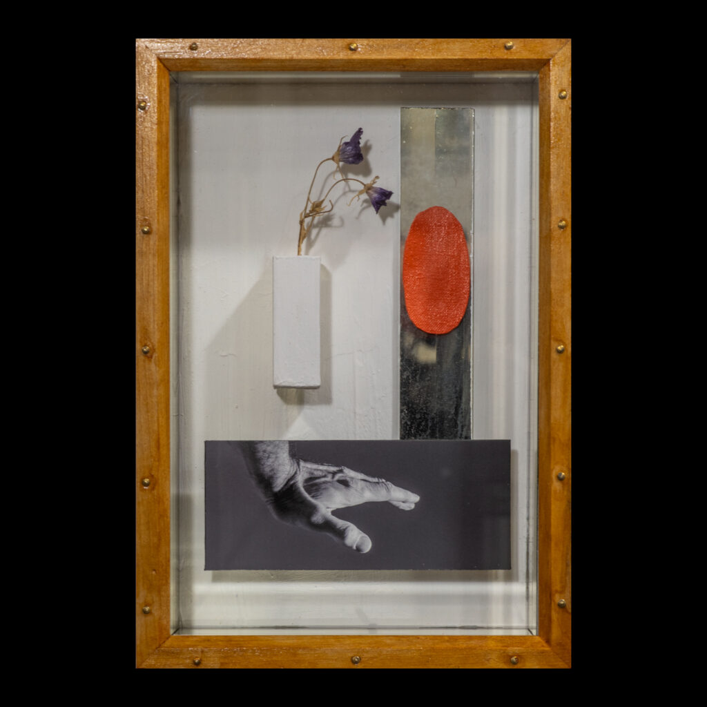 The sanctum boxes — intricate assemblages begun over fifteen years ago — are personal meditations on self-actualization. One, titled ‘Life is for Real,’ contains fragile eggshells from the herons. ‘Life is fragile,’ he says simply. These works merge the tactile and the symbolic, embodying his belief that materials carry stories as vivid as images.