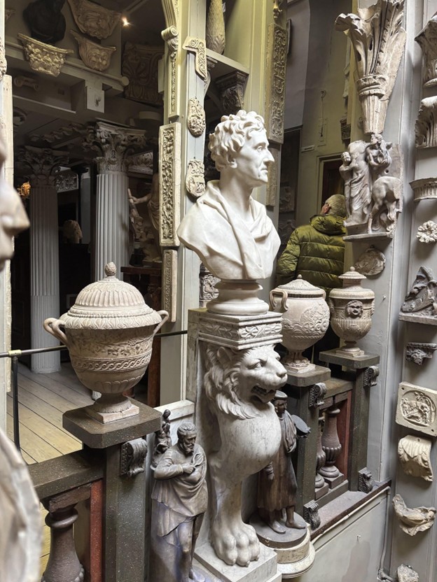 Entering the Soane’s, you’re immediately engulfed by a visual tempest — a staggering accumulation of art, artifacts, and plaster casts squeezed into three adjoining London townhouses. There’s not a patch of bare wall or a breath of empty space. From floor to ceiling, every crevice groans under the weight of some ancient whisper: Roman fragments, Egyptian relics, architectural renderings, models, and sculptures in glass, bronze, and plaster.