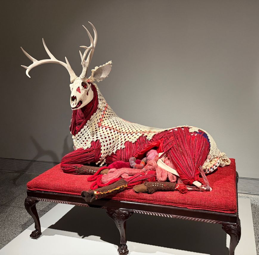 [Image: a 2020 work entitled (No)stalgia by Cannupa Luger. “The climate crisis is the Earth’s way of reminding us that we cannot sustain ourselves outside of a right relationship with the whole,” Luger writes. In (No)stalgia, the museum tells us, this relationship becomes visible: a practice of reciprocity and regeneration, where the transformation of discarded materials gives them renewed purpose and generated positive karma toward a sustainable future.]