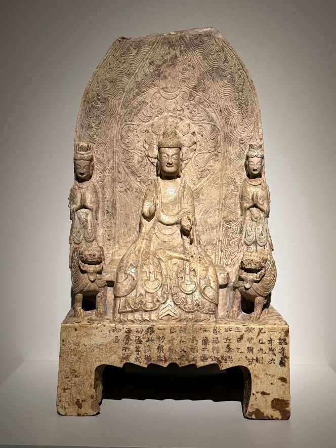 A Buddhist monk named Faxing commissioned it and on the inscription he said, “Monk Faxing made with reverence of this sculpture of Shakyamuni. And respectfully, I pray that the emperor, teacher, fellow disciples, parents, relations, and then all sentient beings may all reach enlightenment.”