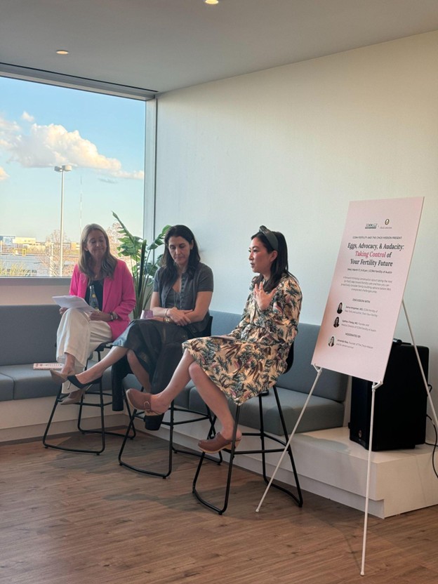 Amanda Rice, a three-time cancer survivor and the CEO and founder of the Chick Mission, moderated the panel. Dr. Sydney Chang, Founding Partner and Medical Director at CCRM Fertility of Austin, and Dr. Jaime Knopman, Director of Fertility Preservation for CCRM Fertility of New York, were featured on the panel.