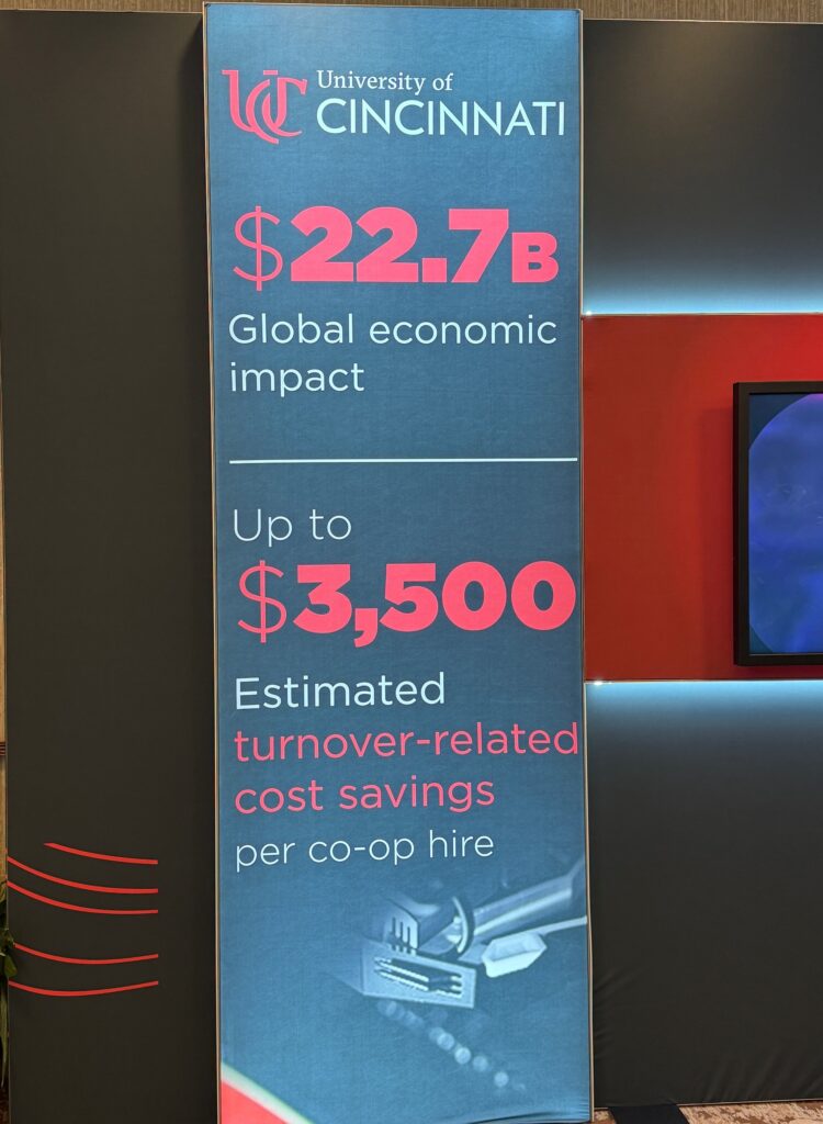 The Univ. of Cincinnati took over a room at the Hilton to promote its co-op program