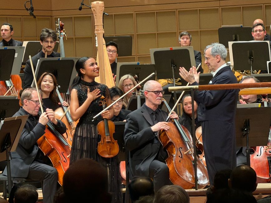 Lead photo: Olmeda, at left, basks in applause from the audience and conductor Fabio Luisi. Photo by C. Cunningham